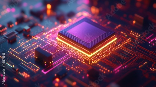 Close-up of a High-Tech Microprocessor on a Colorful Circuit Board