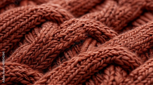 Close-up of a knit sweater, emphasizing the intricate weave and textured surface