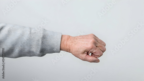 Closeup Of A Knitted Gray Sweater Sleeve With A Clenched Hand