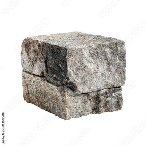 Close-up of a large, cubic stone. Gray and dark gray hues. Rough texture