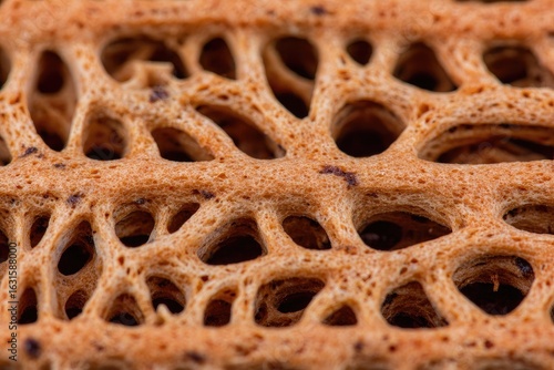 Close-up of a light brown, textured, porous surface with a repeating lattice pattern
