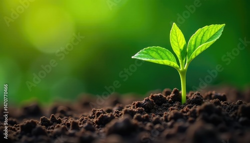 Close-up of a lush green plant sprouting from rich soil, symbolizing Earth Day and environmental growth , vegetation, planet