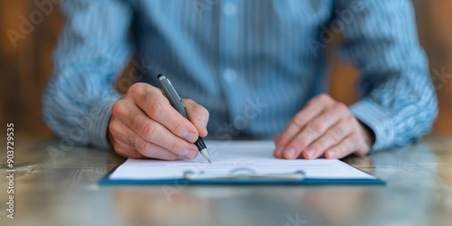 close-up of a man's hand signing a document with a pen on a clipboard - agreement, contract, business, office, desk, signature, hand, pen, paper, docu