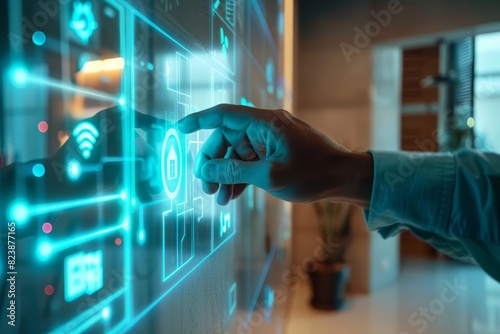 Closeup of a mans hand turning off a light switch in a modern home