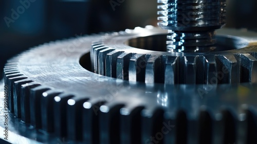Close-up of a metal gear, highlighting precision engineering and optimized process management for manufacturing efficiency