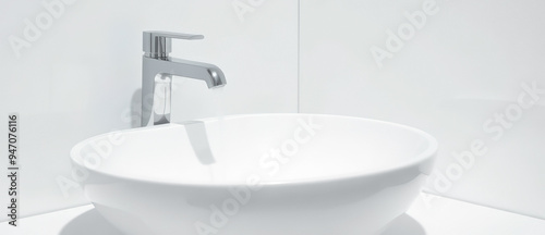 Close-up of a modern bathroom sink with chrome faucet