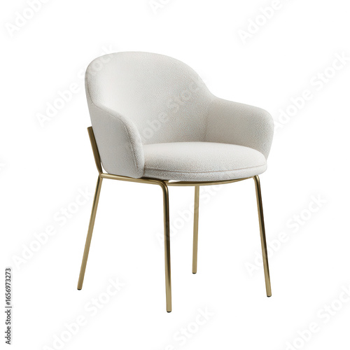 Closeup of a modern white boucle fabric chair seat isolated on transparent background