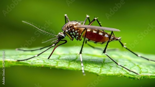 Close-up of a Mosquito Perched on a Leaf, Capturing the Intricate Details and Natural Beauty of This Common Insect in Its Habitat
