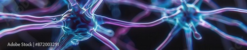 Close-up of a neuron network glowing with blue and purple hues, symbolizing Alzheimer's research, sci-fi, detailed, digital illustration