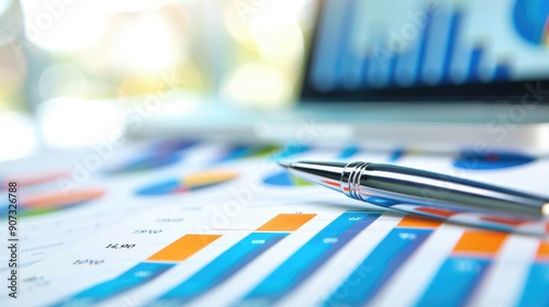 Close-up of a pen pointing at stock market data on a screen, emphasizing financial analysis and market trends..