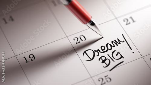 Closeup of a personal agenda setting an important date written w