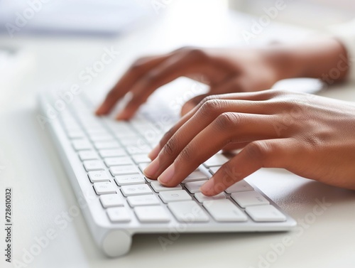 Close-up of a person's hands typing on a sleek wireless keyboard