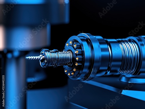 Close-up of a precision-engineered metallic component in a high-tech workshop