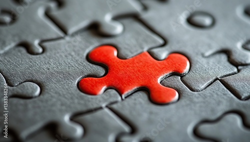 Closeup of a Red Jigsaw Puzzle Piece Among Grey Pieces