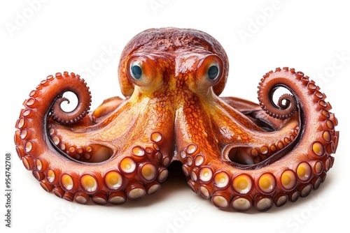 Close-up of a Red Octopus with Large Eyes and Tentacles