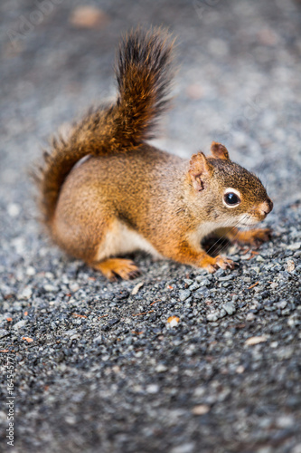 Close-up of a Red Squirrel on the ground.
