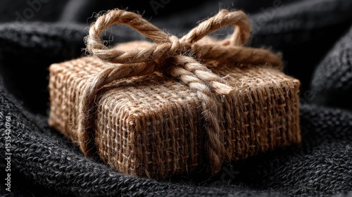 Close-up of a rustic gift box tied with twine.