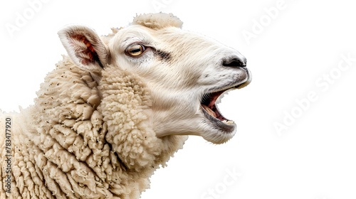 Close-up of a Sheep Bleating Vividly Against a Pure White Background