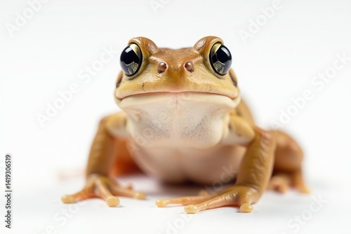 Close-up of a single brown frog against a pure white backdrop, photography, skin