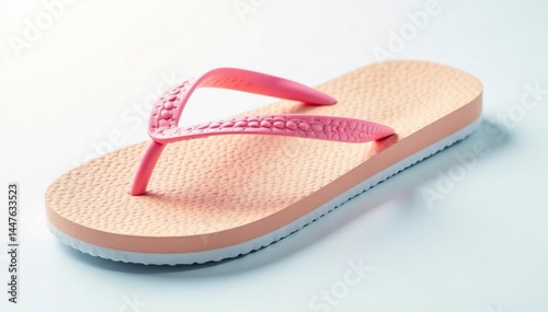 Close-up of a single flip-flop against a stark white backdrop , shoes, black