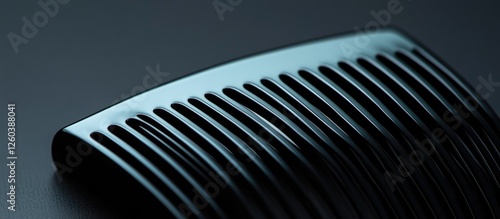 Close-up of a sleek black hair comb highlighting its smooth texture and design against a dark background for beauty and grooming concepts.