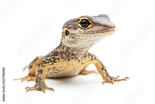 Close-up of a small lizard on white background