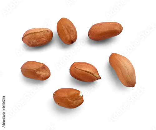 Closeup of a small pile of raw red fresh peanuts on a white background