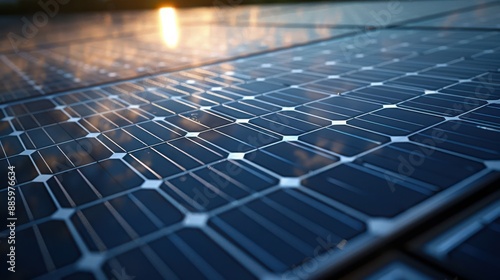 Close-up of a solar panel installation, copy space, realistic photography