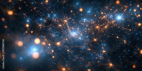 Close-up of a star cluster, where each star is connected by glowing circuits, symbolizing advanced cosmic networks