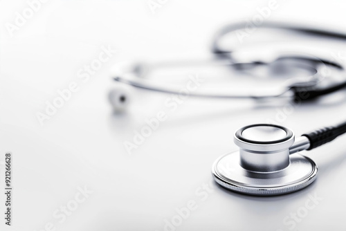Close-up of a stethoscope on a white background, representing medical equipment and healthcare professionalism.
