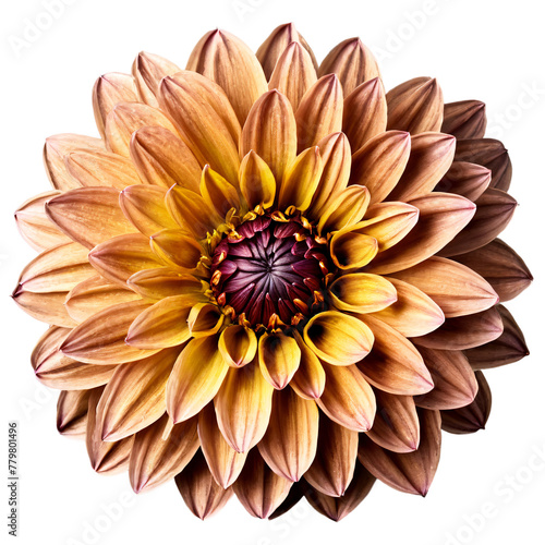 Close-up of a stunning golden brown dahlia flower with detailed petals isolated transparent background