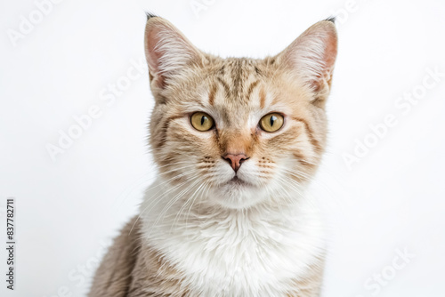 Close-up of a Tabby Cat with White Chest Looking Directly at the Camera