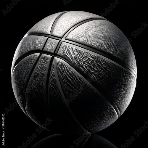 Closeup of a textured basketball on a black background