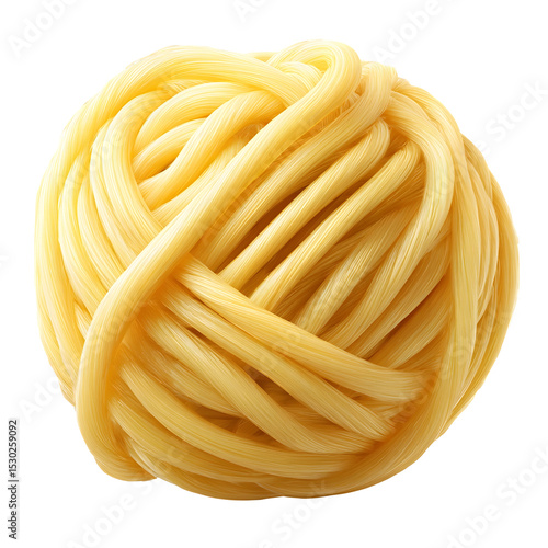 Closeup of a tightly coiled bundle of vibrant yellow spaghetti noodles or pasta on a plain transparent background showcasing the simple and minimalist design