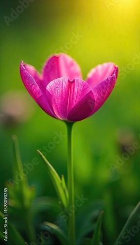 Close-up of a vibrant, dew-kissed wildflower blooming in a lush green meadow, bathed in soft sunlight A perfect representation of untamed, natural beauty , aesthetic, botany