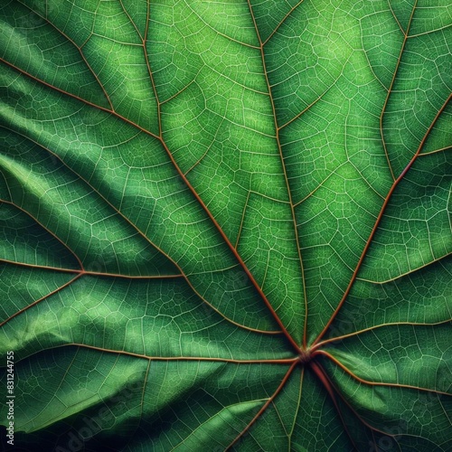 Close-Up of a Vibrant Green Leaf with Detailed Veins and Texture
