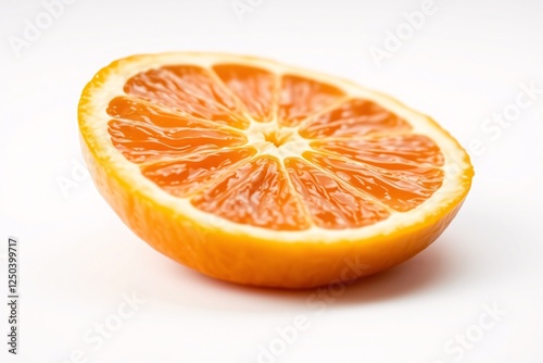 Close-up of a vibrant orange slice on a plain white background