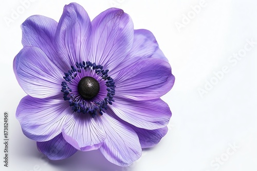 Close-up of a vibrant purple flower with delicate petals on a white background, showcasing its natural beauty and intricate details.