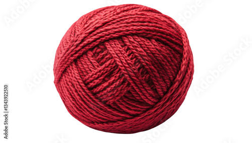Closeup of a vibrant red yarn ball on a transparent background, perfect for knitting and crochet projects, showcasing texture and color for crafting enthusiasts