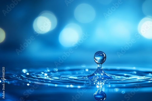 Close-up of a water droplet creating ripples on a calm blue water surface