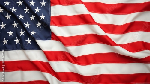 Close-up of a waving American flag, showing its vibrant red and white stripes and blue canton filled with stars.