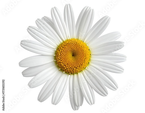 Close-up of a white daisy with a bright yellow center, isolated on white background (1)