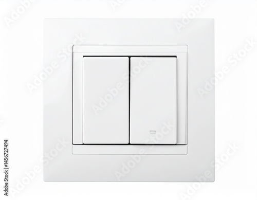 Close-up of a white electrical light switch with two rectangular buttons, set on a white wall