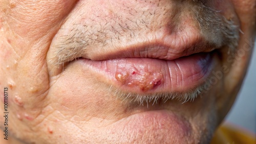 Close-up of a whitish patch on the inner cheek, representing a benign oral lesion, with subtle texture and vascular markings on a neutral background.