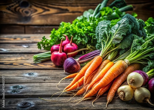 Close-up of a Winter Seasonal Vegetable Display with Abundant Copy Space for Culinary and Farm-to-Table Themes, Showcasing Fresh Produce in a Rustic Setting