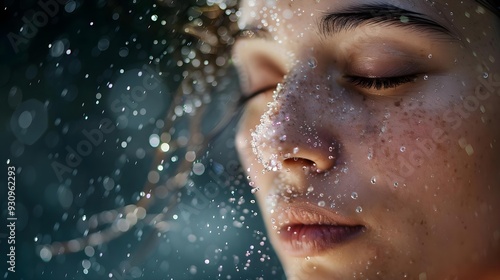 Closeup of a woman spraying refreshing water mist