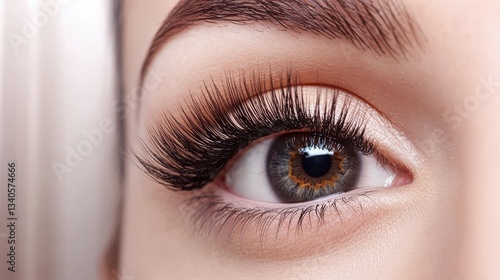 Close-up of a woman's eye with long lashes, soft light, blurred background, conveying quiet introspection.