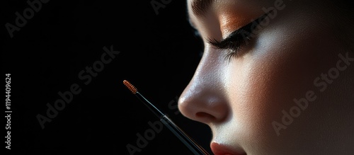Close-up of a Woman's Face with Makeup Brush