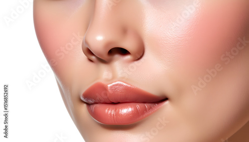 Close-up of a woman's lips with glossy finish representing summer skincare
