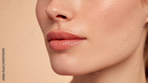 Close-up of a woman's lower face showing smooth skin, full lips, and a natural, radiant complexion
